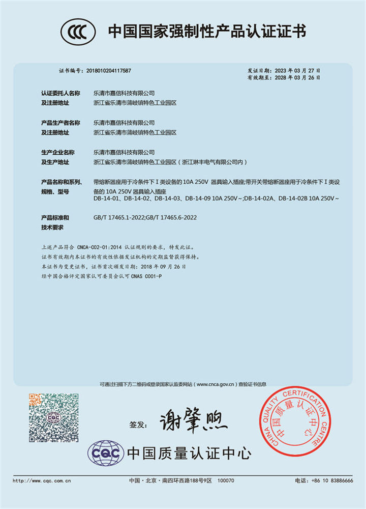 樂(lè)清市嘉信科技有限公司位于東海之濱的浙江省樂(lè)清巿蒲岐鎮(zhèn),緊靠著104國(guó)道線和甬臺(tái)溫高速公路,離溫州火車站、飛機(jī)場(chǎng)均在50公里之內(nèi),交通非常便利。是一家具有產(chǎn)品開(kāi)發(fā)、設(shè)計(jì)、模具制造、生產(chǎn)經(jīng)營(yíng)為一體的電子元件制造廠家。公司主要產(chǎn)品有AC器具插座系列、DC電源插座系列、蹺板開(kāi)關(guān)系列等產(chǎn)品。