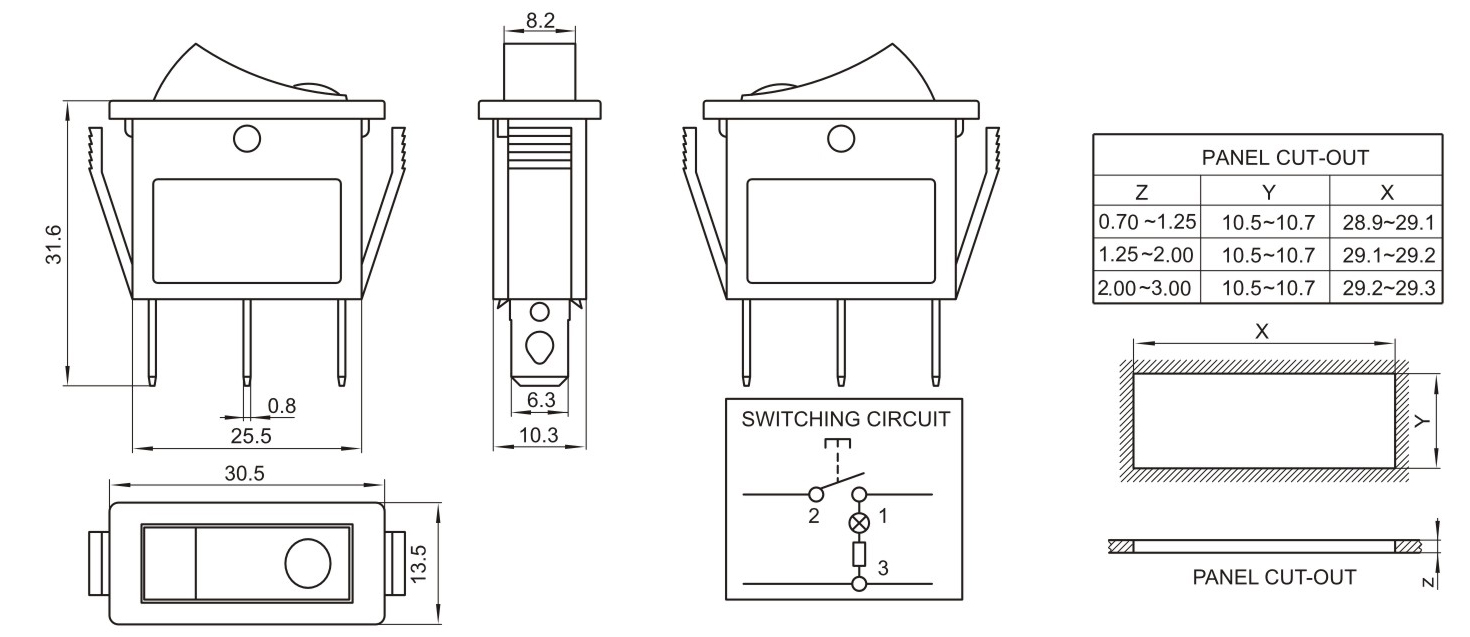 → 額定電流、電壓 RATING16A 250VAC 20A 125VAC