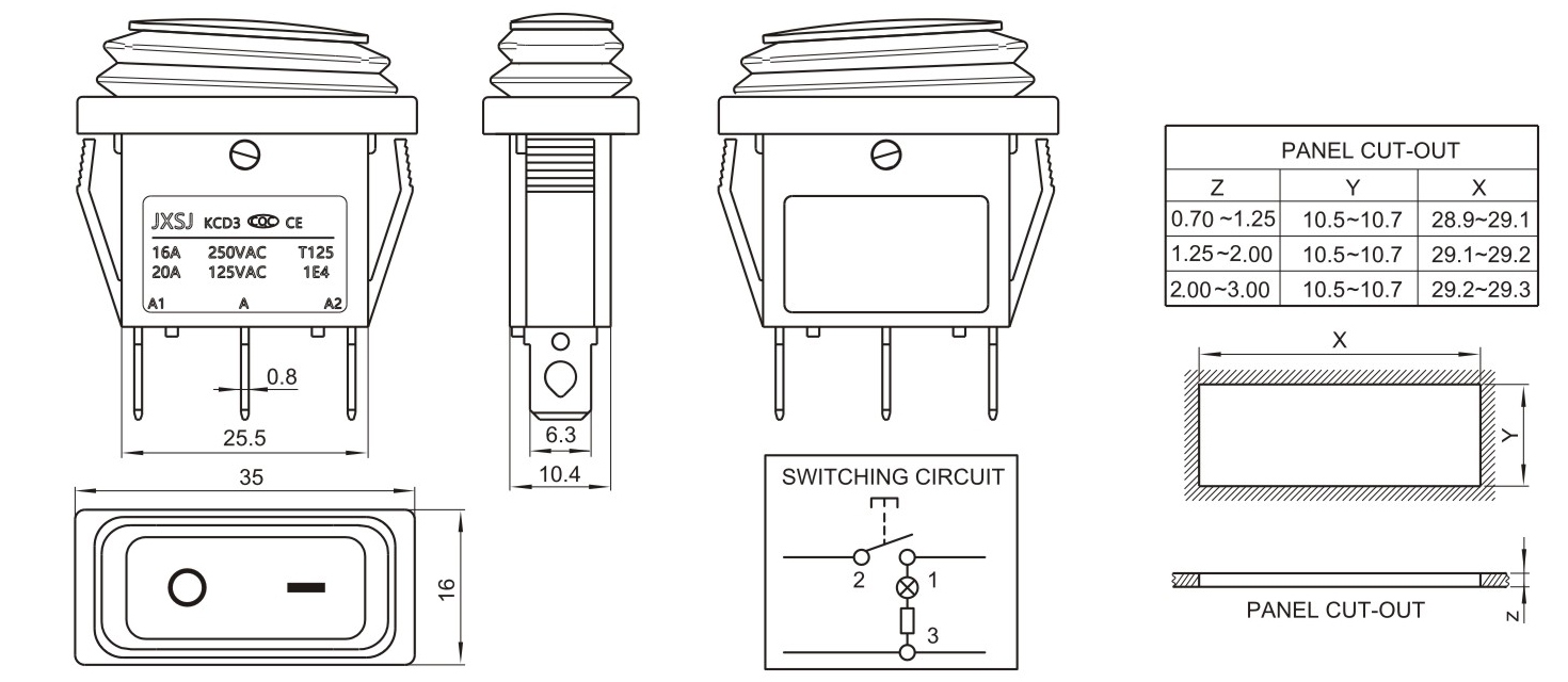 → 額定電流、電壓 RATING16A 250VAC 20A 125VAC