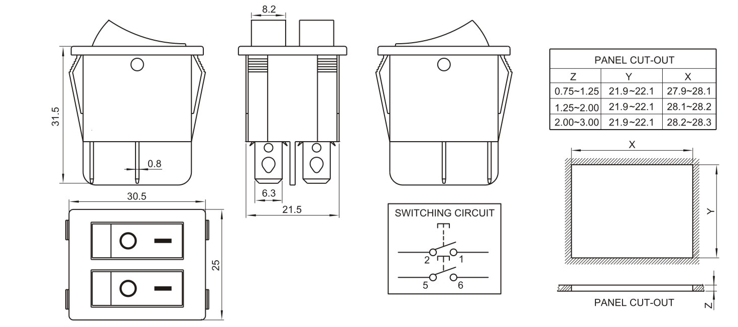 → 額定電流、電壓 RATING16A 250VAC 20A 125VAC