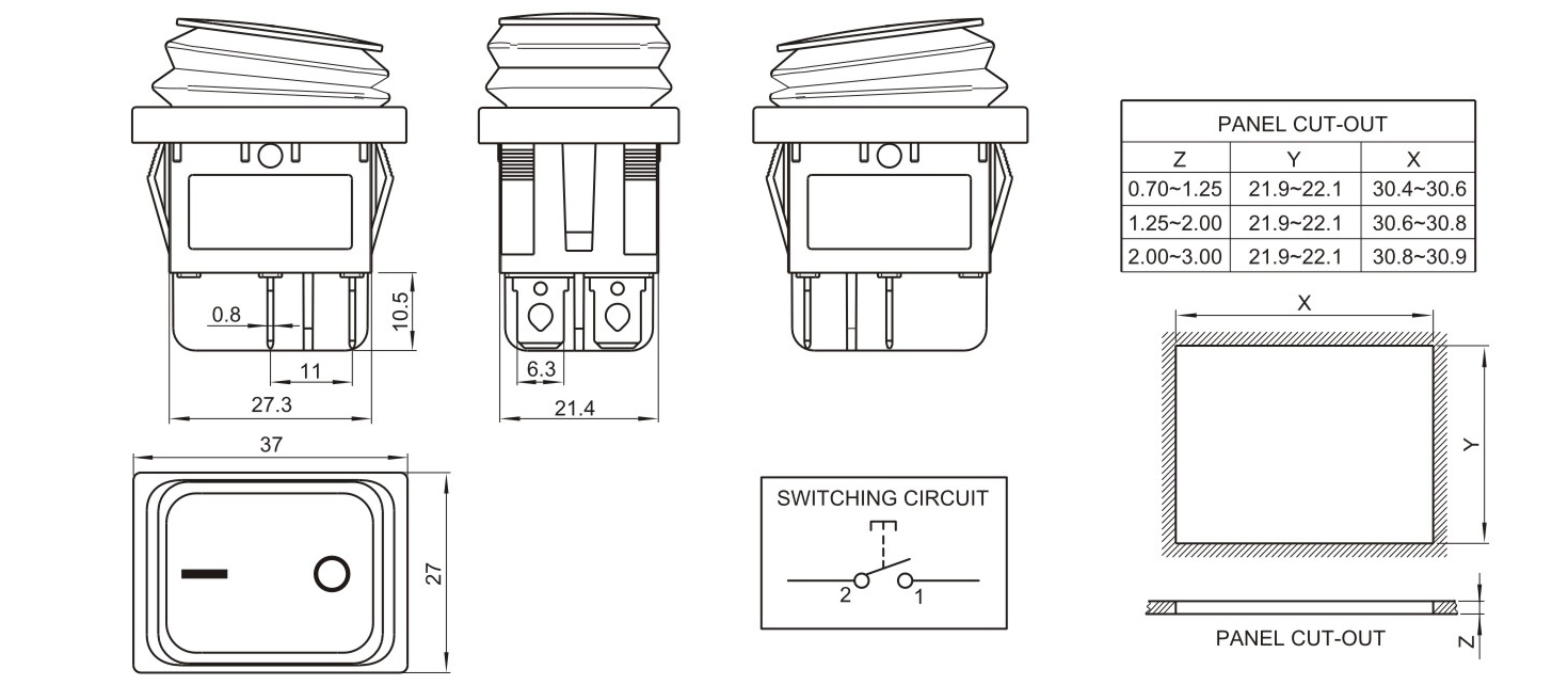 → 額定電流、電壓 RATING16A 250VAC 20A 125VAC