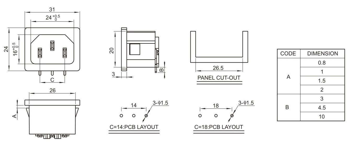 → 標(biāo)準(zhǔn)規(guī)格 STANDARDIEC60320 C6