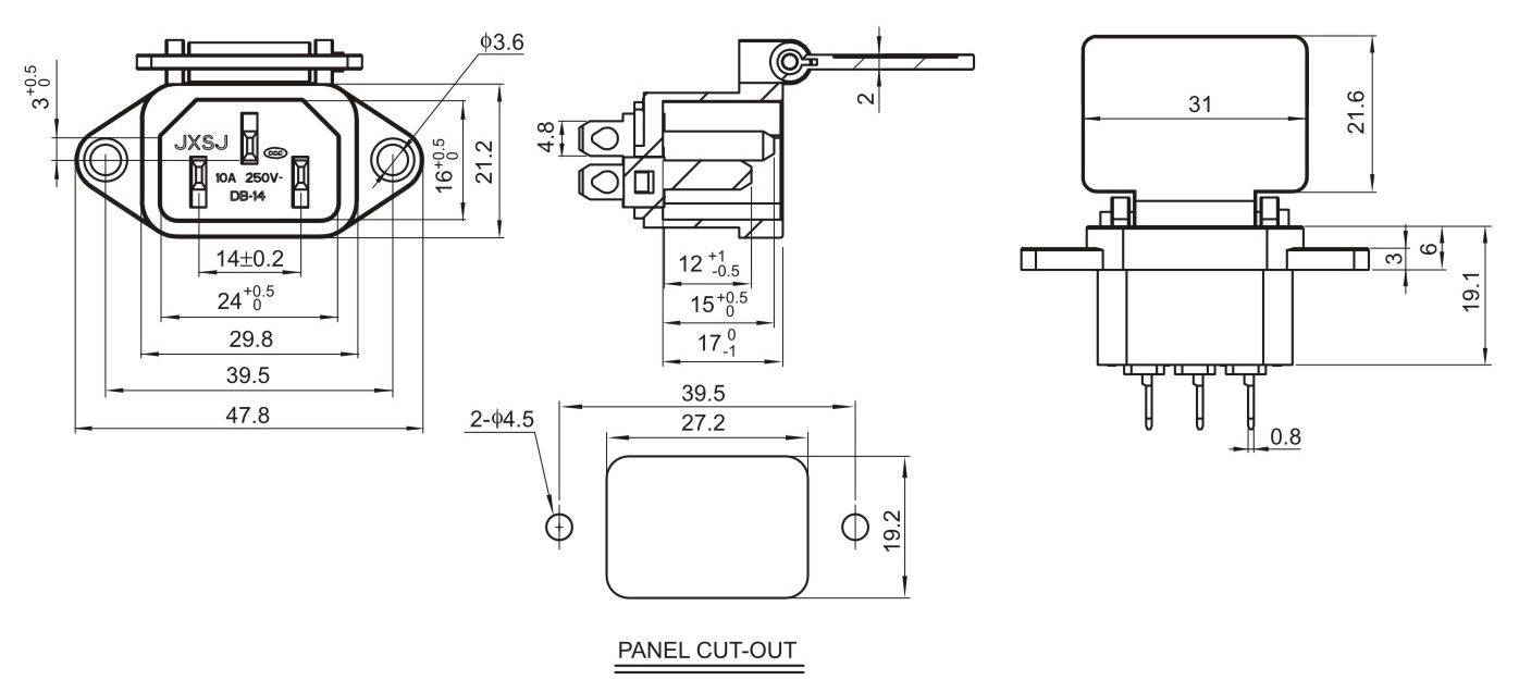 → 介電強(qiáng)度 DIELECTRIC INTENSITY2500VAC/5S Between terminals