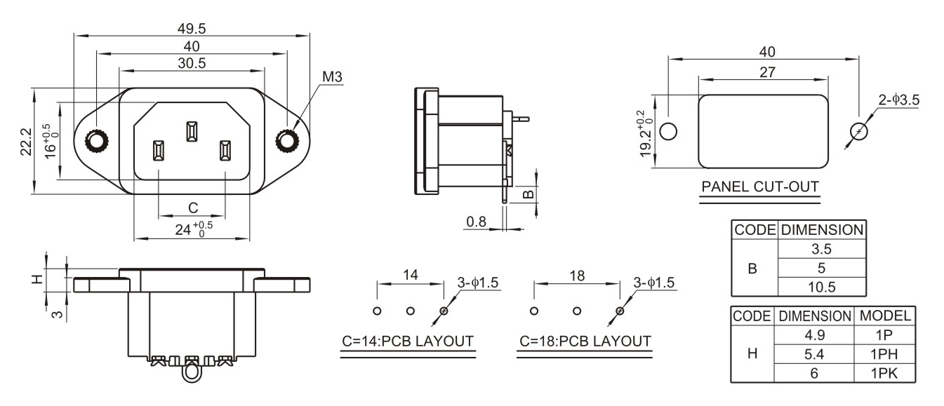 → 標(biāo)準(zhǔn)規(guī)格 STANDARDIEC60320 C6