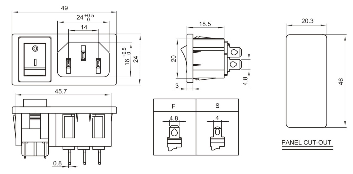 → 介電強(qiáng)度 DIELECTRIC INTENSITY2500VAC/5S Between terminals